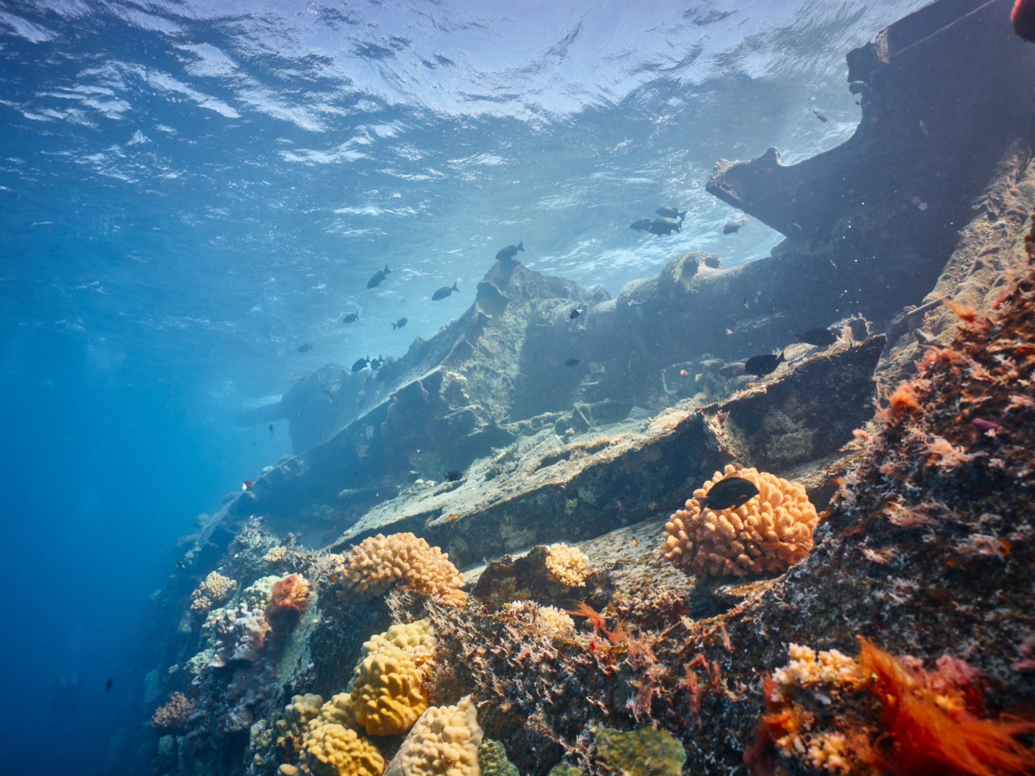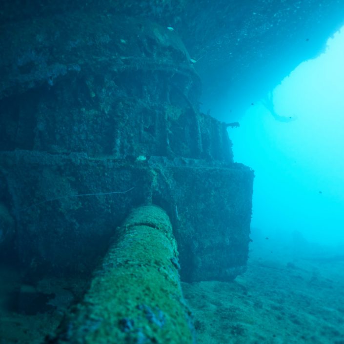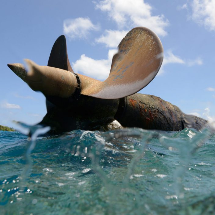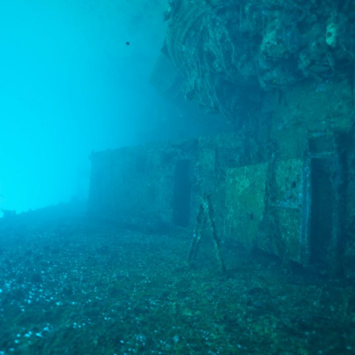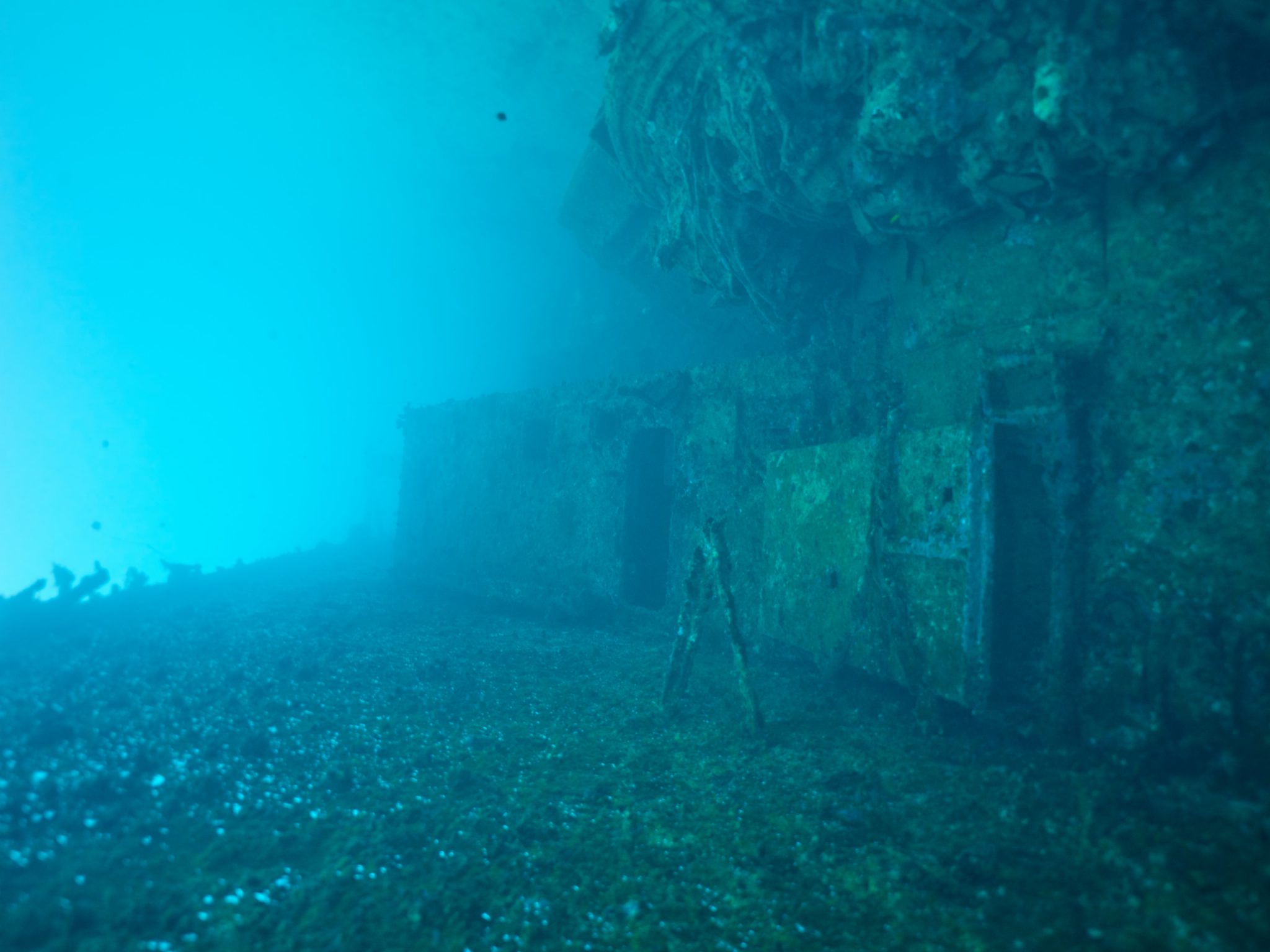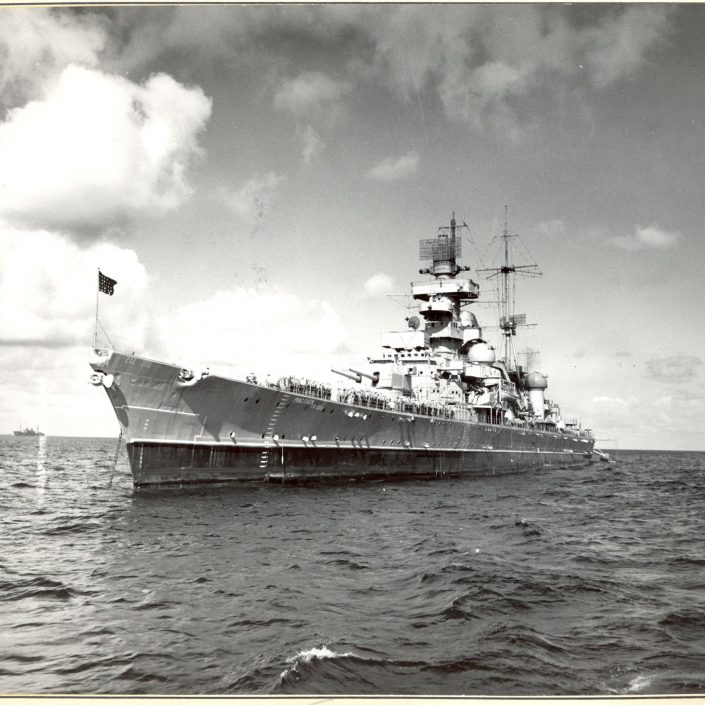 The Prinz Eugen was one of only two major German naval vessels to survive the WWII.In July 1946 it was moored at Bikini Atoll during Operation Crossroads to test the effect of a nuclear Bomb on a modern, welded Ship. After only minor damage the heavily radiating Ship was hauled to Kwajalein Atoll where it sunk on the 22nd of December 1946.