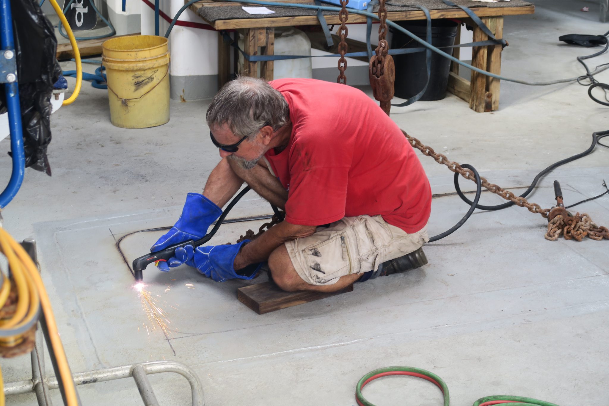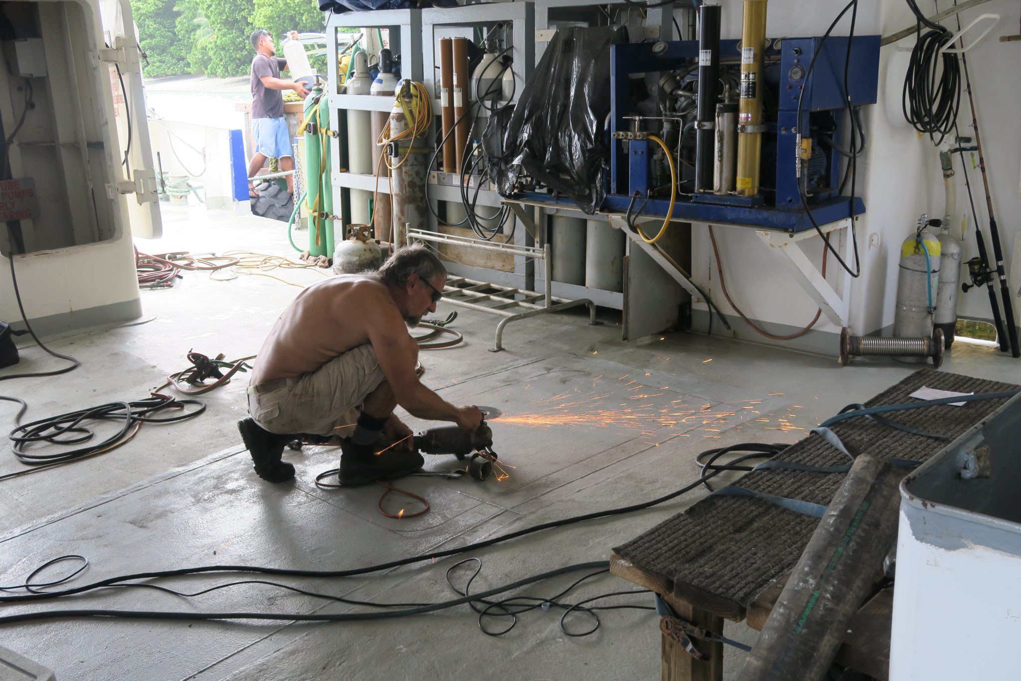 The floor had to be cut open to bring the spare generator in.