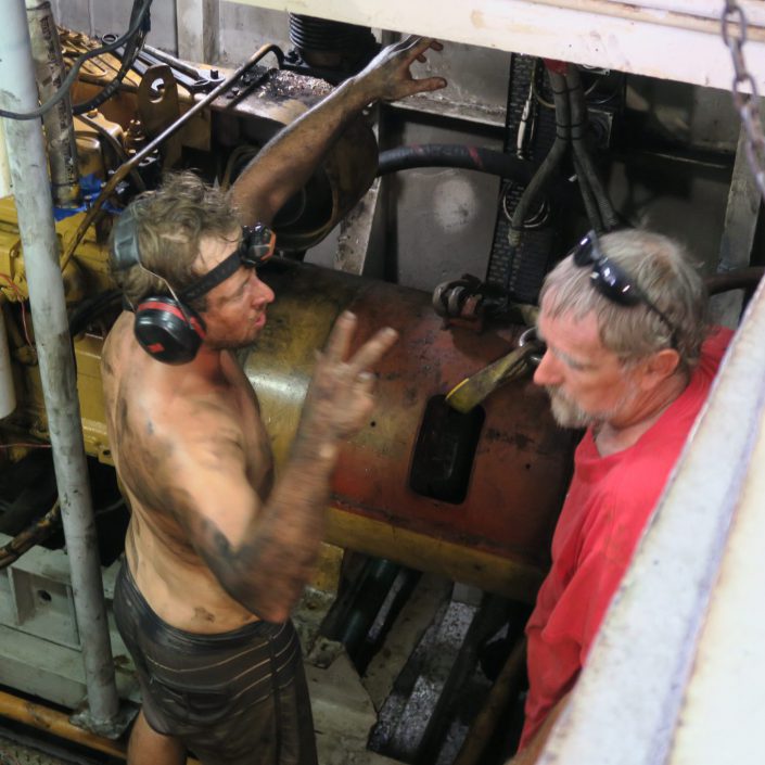 On July 4th the generator onboard the Windward broke. Unthinkable to to continue the journey. So the ship headed back to Beran Island for repair.