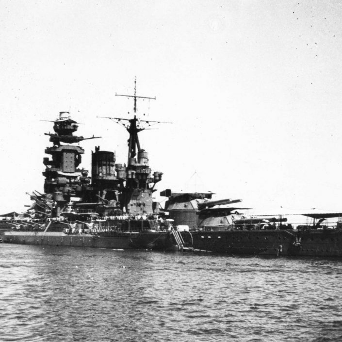 For Test Baker, an underwater explosion, the ship was positioned 870 meters from ground zero. Nagato rode out the tsunami of water from the explosion with little apparent damage. A more thorough assessment could not be made because she was dangerously radioactive. Her list gradually increased over the next five days and she capsized and sank during the night of 29/30 July.
